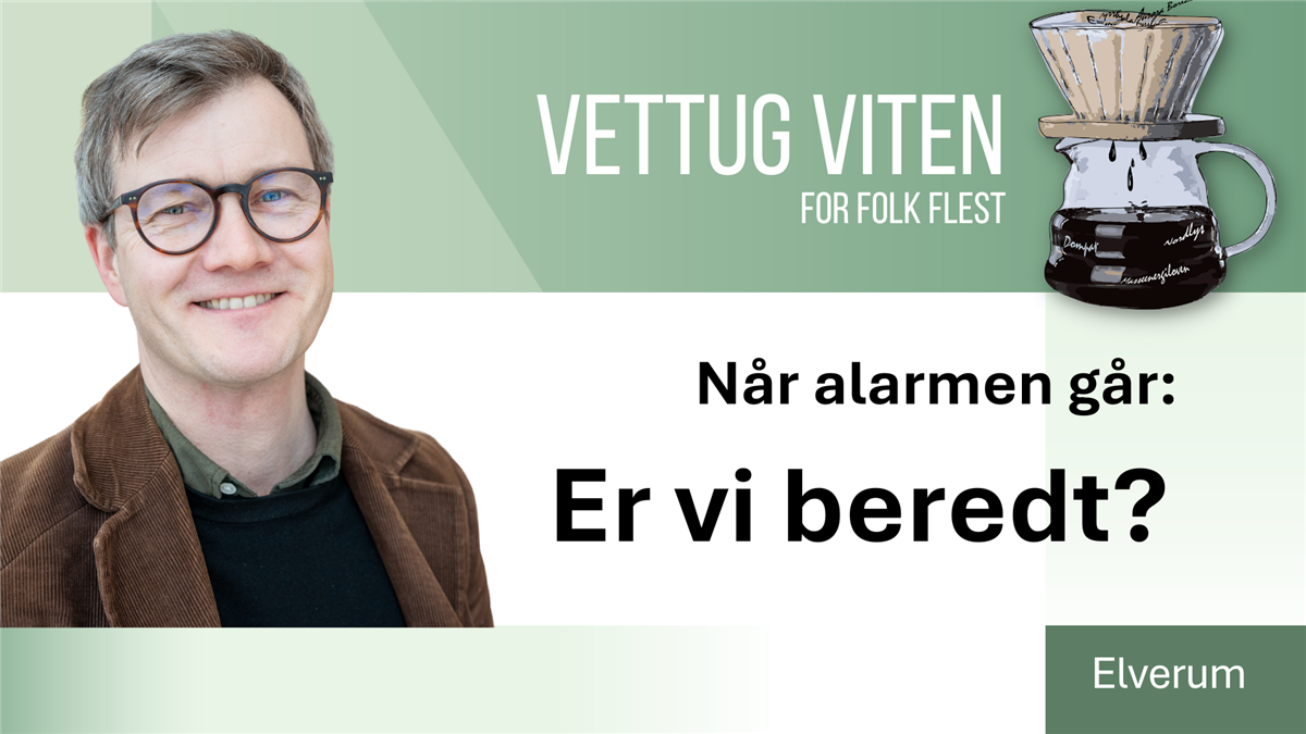 2026 er Totalforsvarsåret, et år da hele det norske samfunnet skal være med å utvikle beredskapen og øve. Hva er egentlig «totalforsvaret» og hvordan er det avgjørende for om et land klarer å forsvare seg? På hvilke måter gjør andre små europeiske stater dette – og hvordan ligger Norge an? Hva kan vi lære av ukrainerne og hvordan de har klart å mobilere hele samfunnet i sin forsvarskamp? Gjermund Forfang Rongved har gitt ut flere bøker om totalforsvaret i Norge og Europa og hvordan ulike samfunn bygger sin sikkerhet. Han er økonomisk historiker og førsteamanuensis ved Internasjonale studier ved Universitetet i Innlandet. Lær noe nytt i lunsjen og ta deg en tur til Vettug viten i Elverum kulturhus!