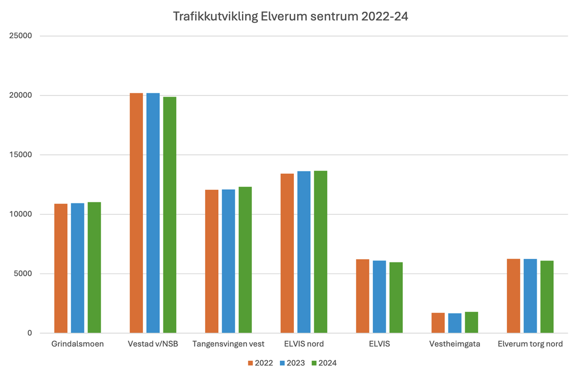 Trafikkutvikling i Elverum sentrum 2022 - 2024Trafikkvekst fram mot 2036