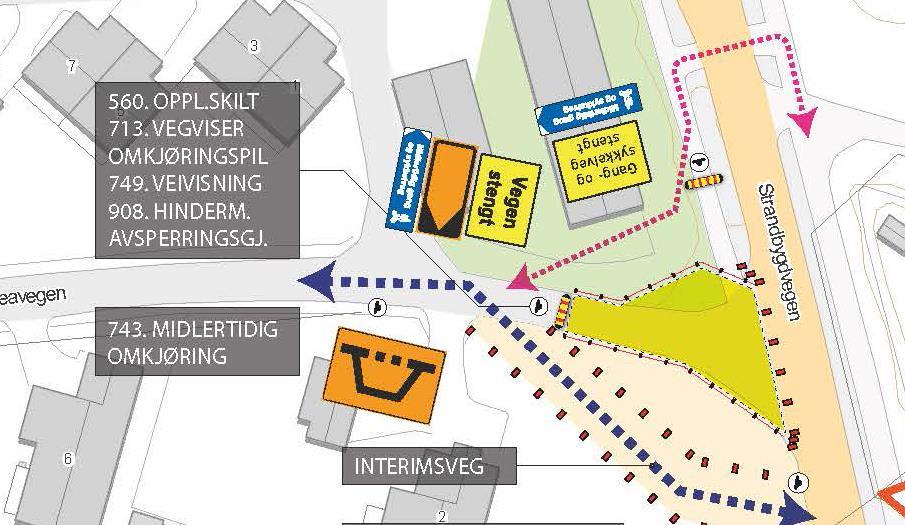 Her stenges den eksisterende utkjøringen Strandbygdvegen/Linneavegen, fra og med torsdag 12. februar til og med uke 9, altså ut februar.