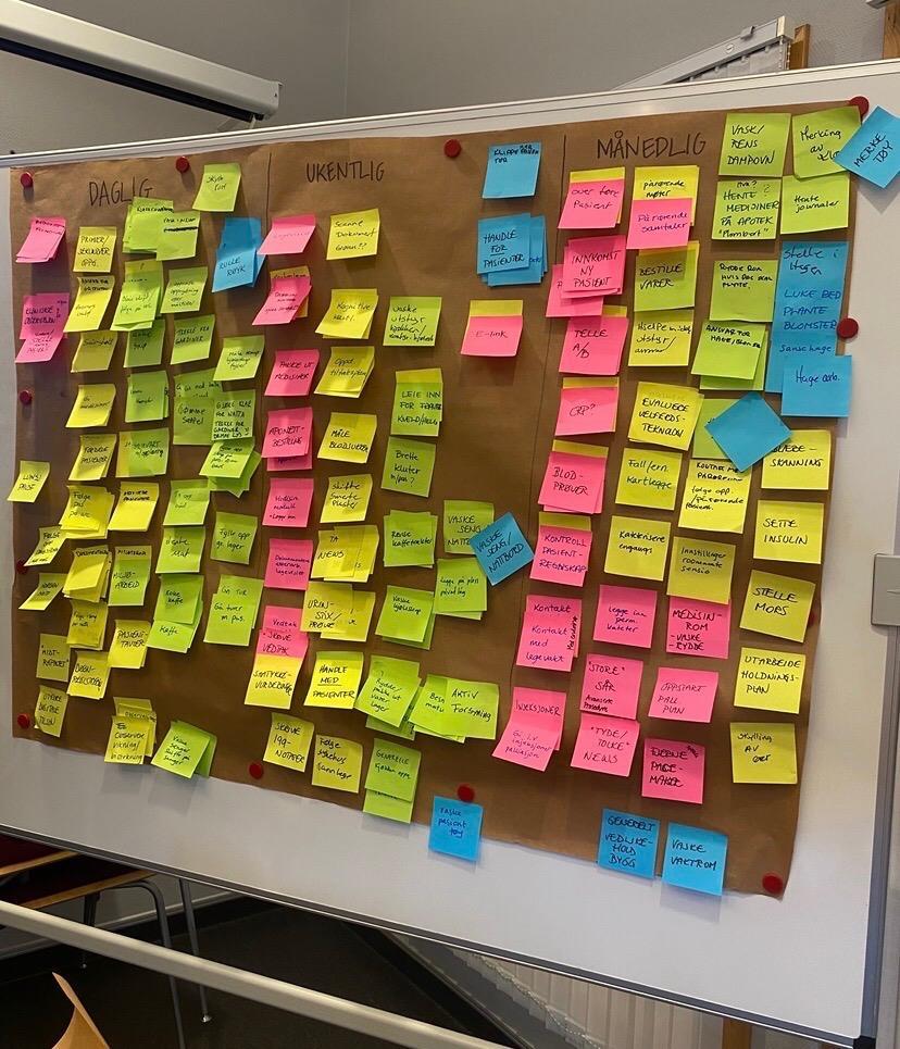 Det ble mange lapper med oppgaver som gjøres daglig, ukentlig og månedlig.0800-møte