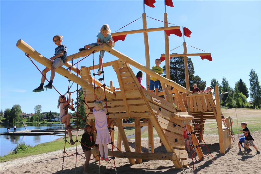 Sagtjernet badeplass ligger rett nord for sentrum. Her finnes blant annet stupetårn, brygge, klatrestativer, sjørøverskip, sandvolleyballbane, treningsappareter, grillplass, toaletter og benker. Du kjører til parkeringsplassen via Andreas Grøttings veg.