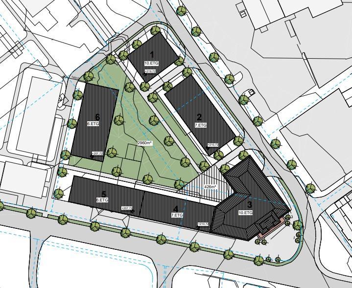 Utbyggingen skal sikre effektiv arealutnyttelse og samtidig bidra til et urbant og funksjonelt bymiljø med tydelige kvartalsstrukturer. Byggehøydene varieres mellom 6 og 10 etasjer, slik det fremgår av illustrasjonsplanen. De høyeste byggene plasseres mot hovedgater, mens lavere bygg gir en naturlig overgang mot omkringliggende bebyggelse. Dette gir en harmonisk bystruktur, gode sol- og lysforhold og tydelige romdannelser.